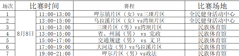NG体育官网揭幕战将于8月8日11:00开幕式后进行
